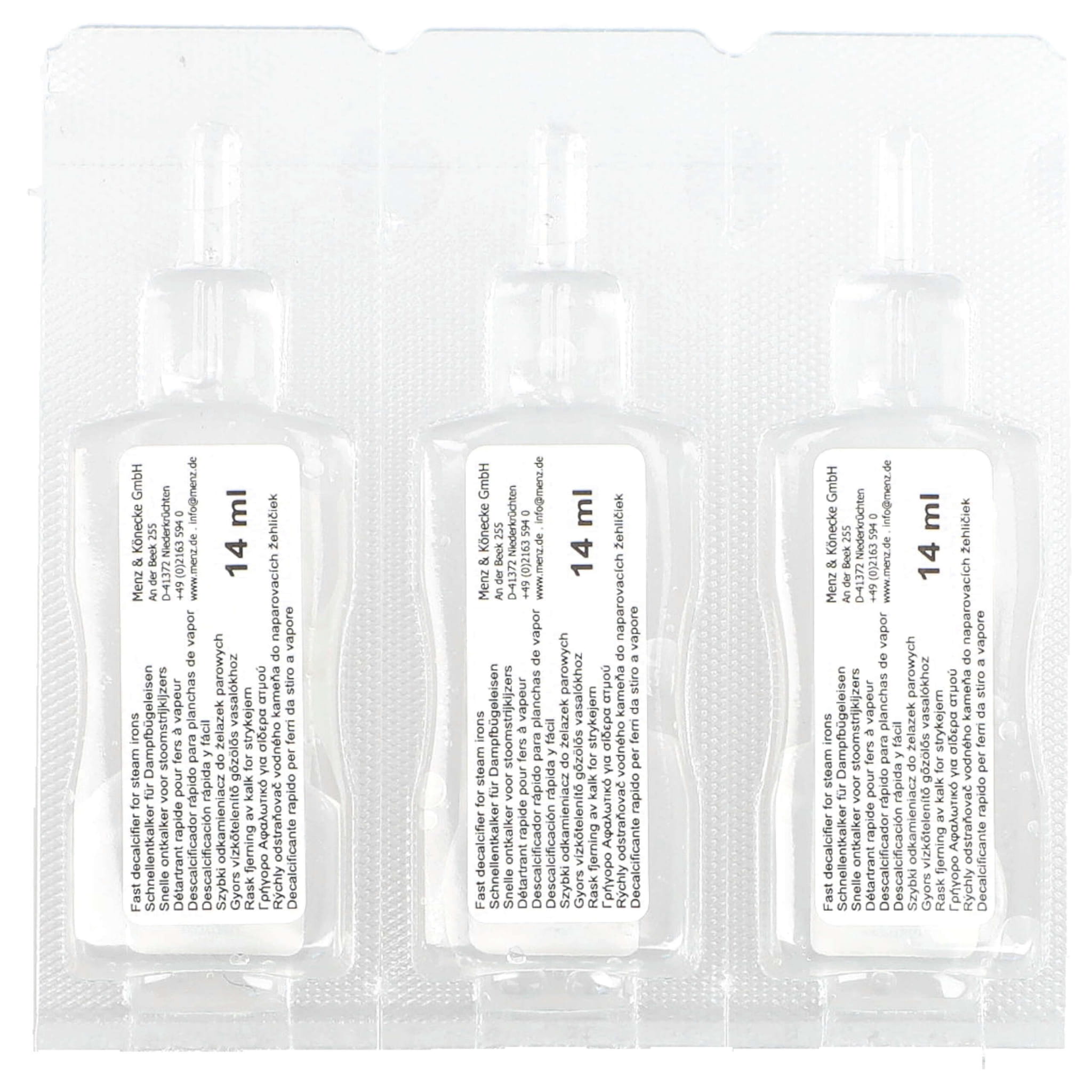Główne cechy: płynny odkamieniacz w jednorazowych ampułkach 6×14 ml / przeznaczony do żelazek parowych i żelazek ze stacją pary wszystkich marek / szybkie i skuteczne rozpuszczanie osadów z kamienia / formuła na bazie kwasu cytrynowego i mlekowego / poręczne porcje – jedna ampułka na jedno odkamienianie / regularne stosowanie poprawia ilość i jakość pary oraz wspiera niższe zużycie energii.